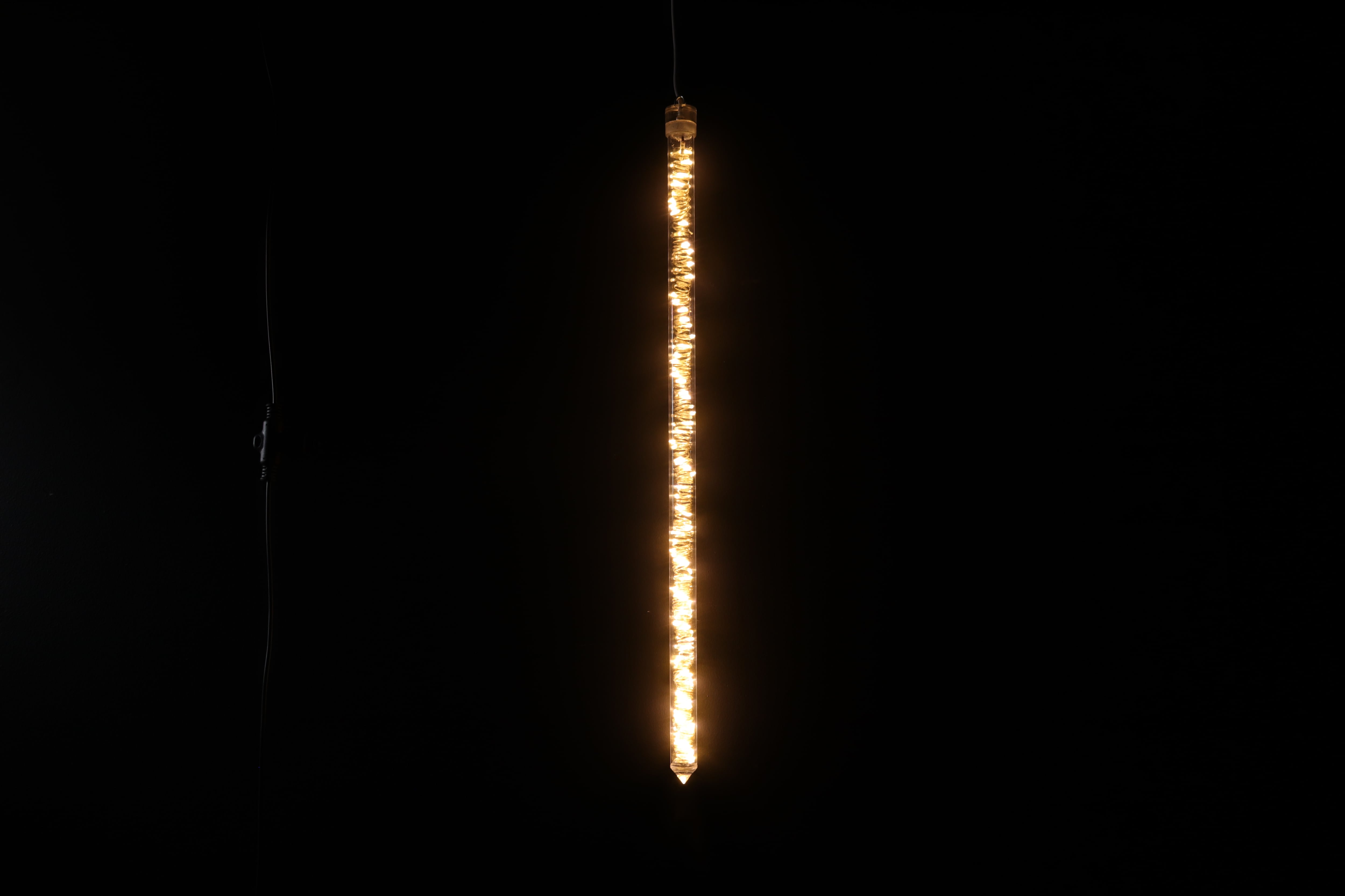 スタイリッシュなラインデザインが空間にアクセントを添え、チューブの中に収められた螺旋状のLEDライトが点滅し、動きのある輝きが特徴です。
