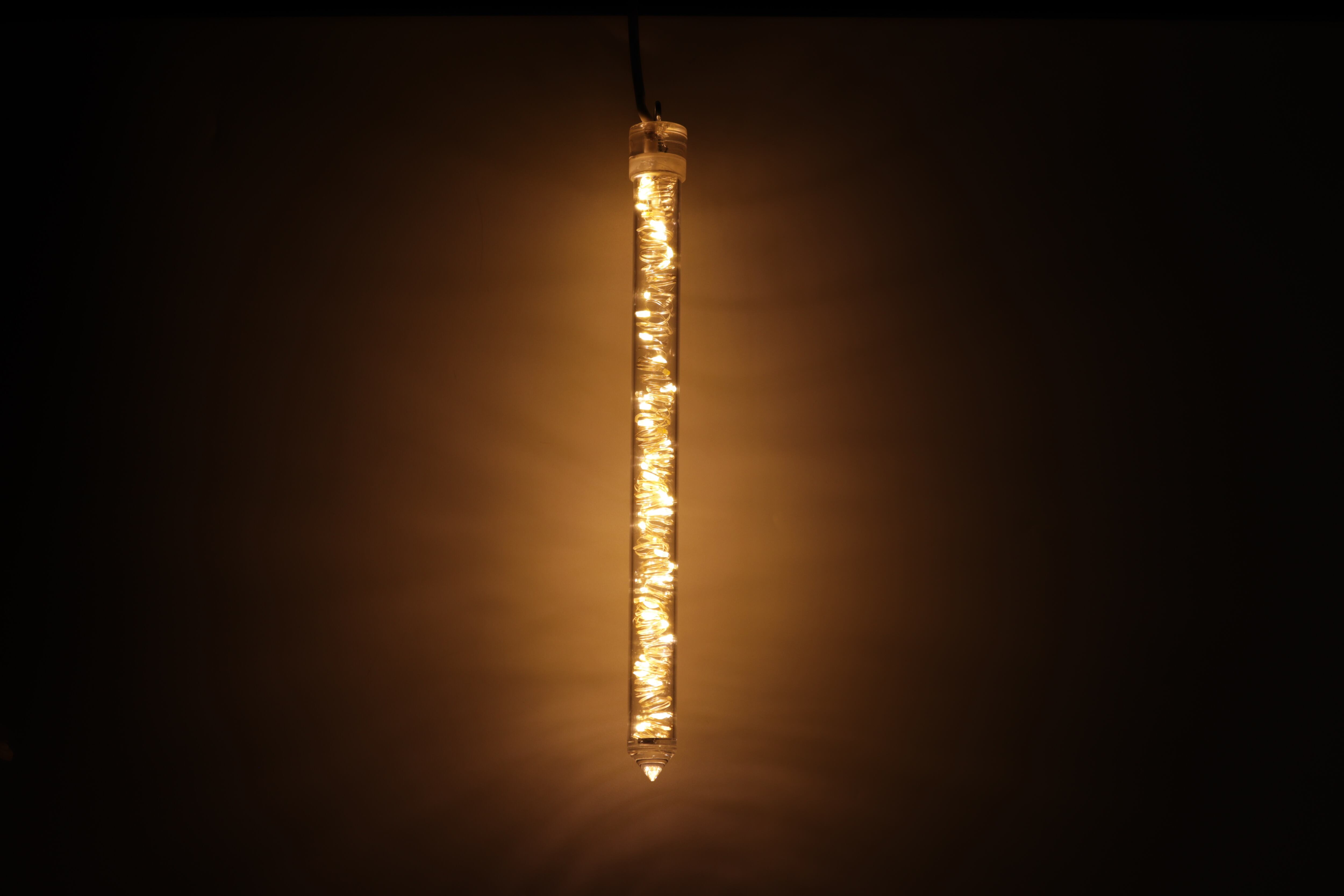 スタイリッシュなラインデザインが空間にアクセントを添え、チューブの中に収められた螺旋状のLEDライトが点滅し、動きのある輝きが特徴です。